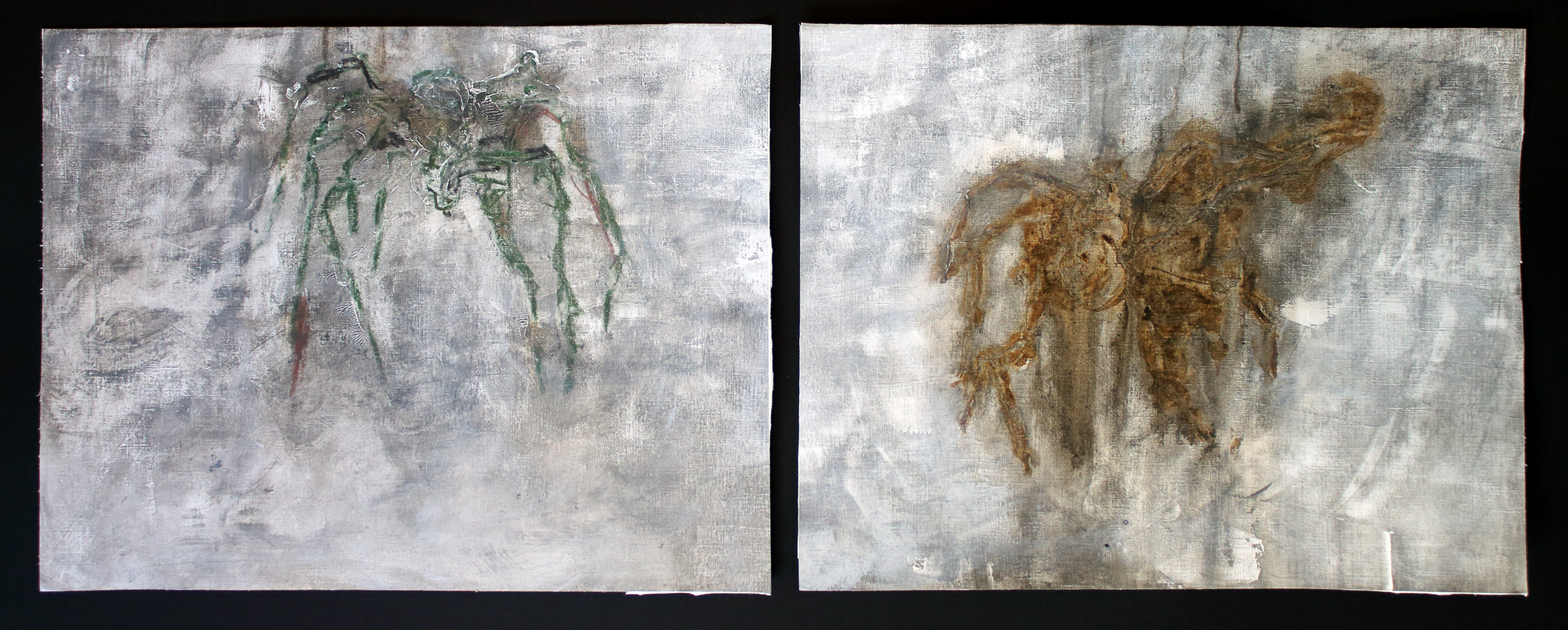 A través de estas piezas, exploro la relación entre el yo y los elementos que han ido moldeando mi identidad, tanto artística como personal. También se refleja aquí mi manera de pintar: más oscura, matérica, intensa, una forma de abordar la imagen que aún hoy parece descolocar por provenir de una mujer. Historia natural se convierte así en un autorretrato expandido, construido con los rastros materiales de mi propia forma de mirar y de existir.